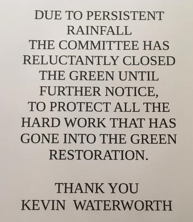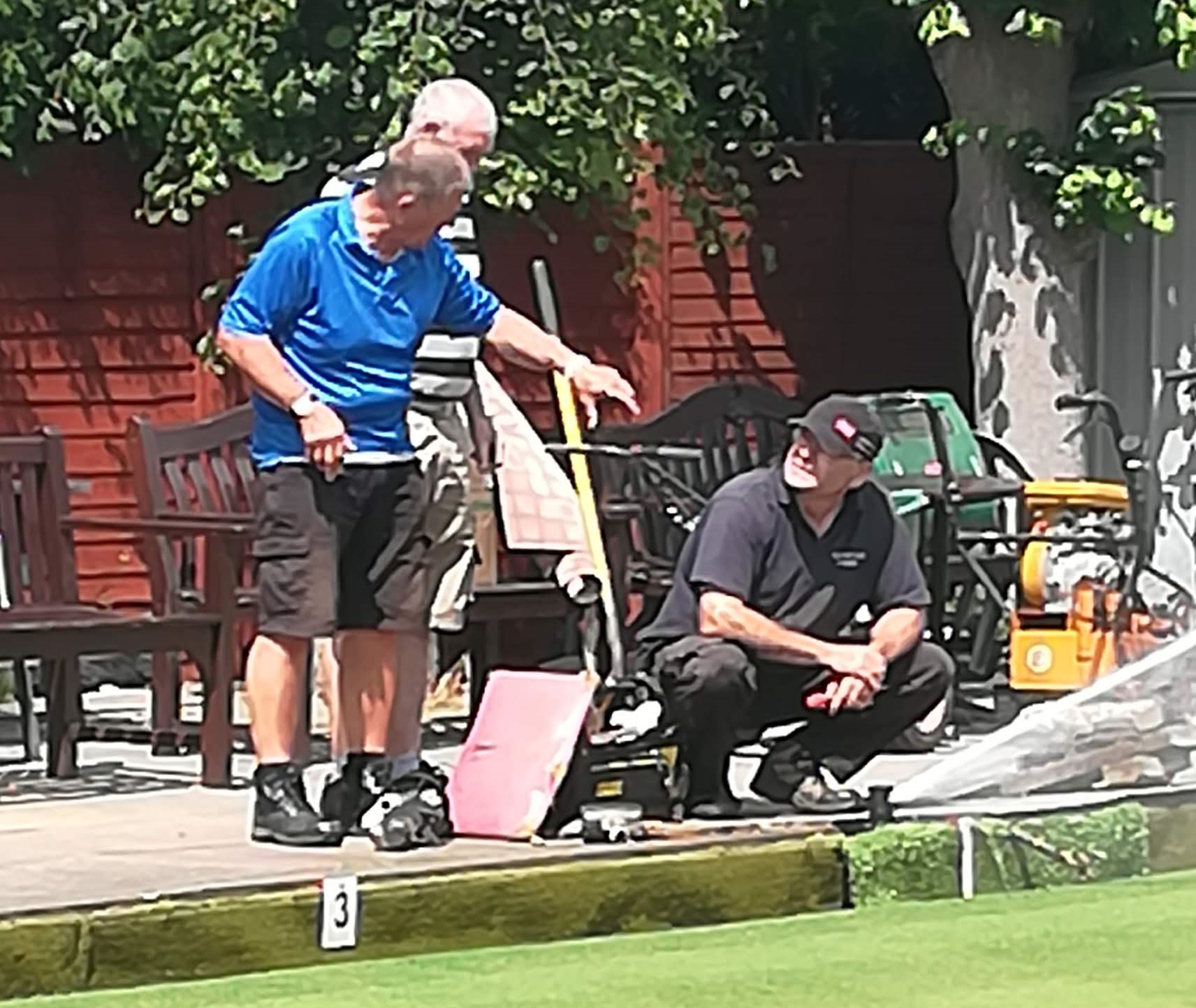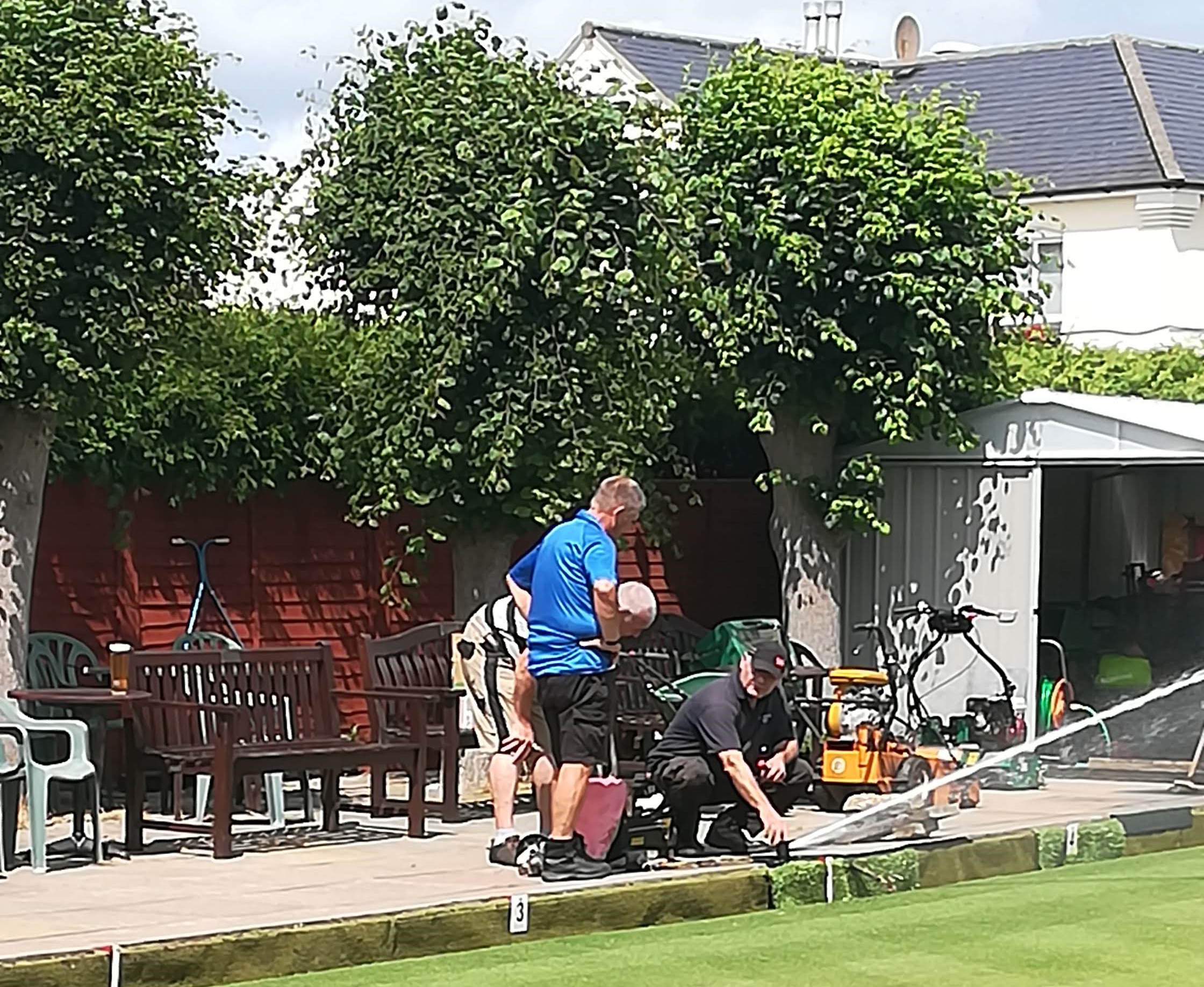 Monday 15 July: Deep scarifying and seeding to be carried. Assuming it does not rain should be OK for Tuesday league matches and other club competitions during the week.Some photo of the “men at work”