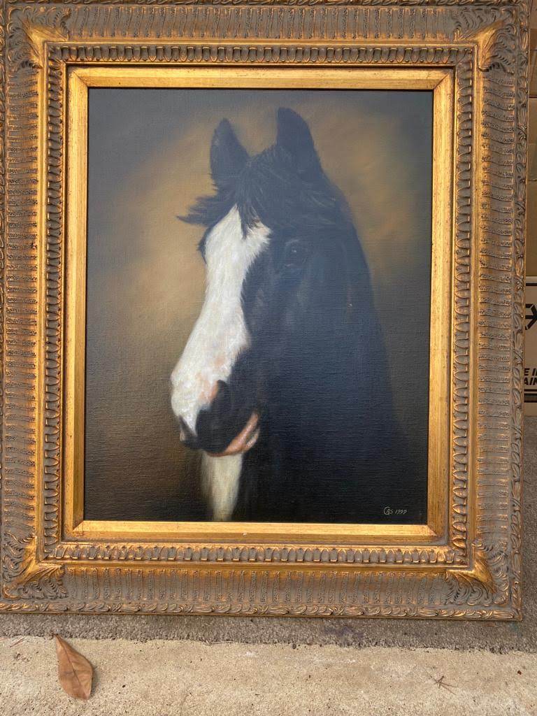 Modern oil canvas ‘My Favourite’ signed CRS 1999, gilt cushion frame , 73×62 cm.