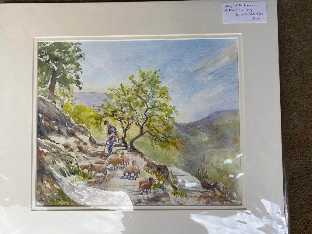 Modern watercolour, ‘Long Walk Home’ by June Wilkinson, mounted, size 43x49cm, and one other (2)