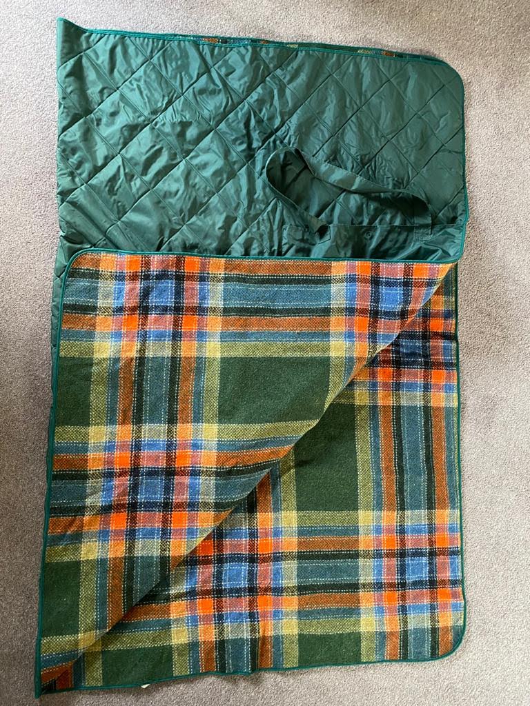 LOT 18 Picnic rug, quilted gree ground cover, 100cmx140cm.