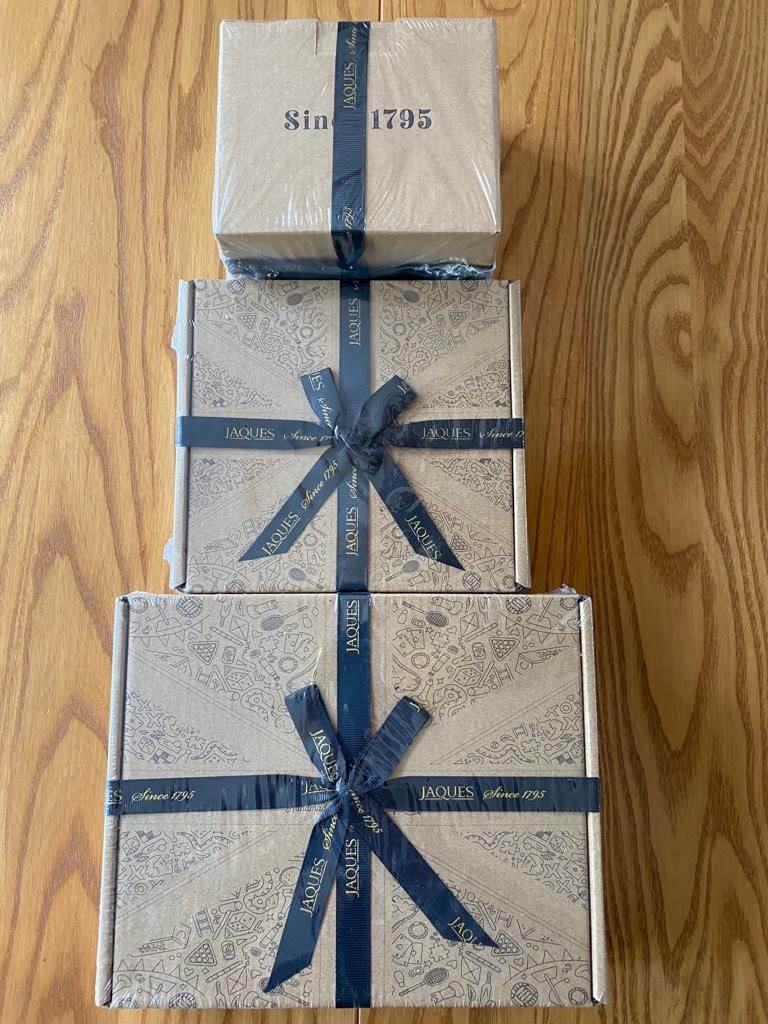 Three boxed ‘Jacques’ children’s wooden toys, all New in box.