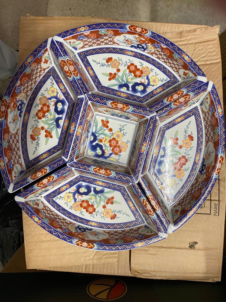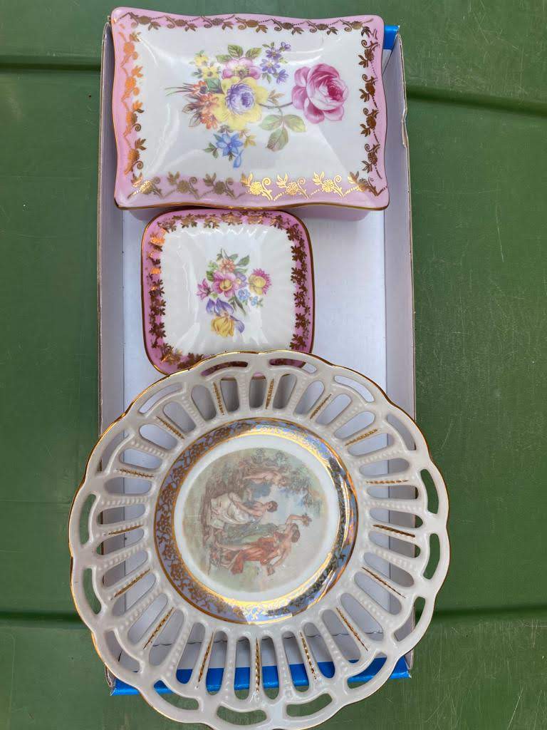 Dresden ‘ribbon’ dish and two other trinket boxes (3)