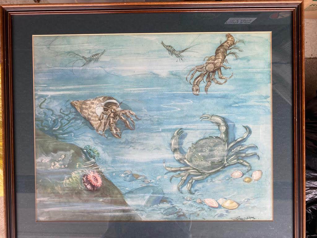 Modern colour, ‘The Crab with the long rail’ bears signature, frame size 49x59cs (2)