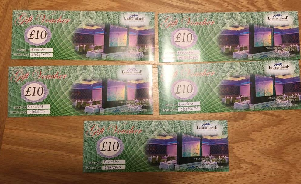 5 x £10 Vouchers from EVEREST LOUNGE Fine Dining, MH